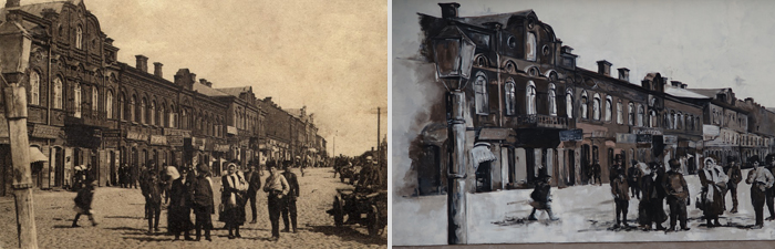 Еще одна картина на другой стене баптистской молельни была написана в 2015-м. На ней изображено Двинское шоссе в 1916 году. В том же году на здании RDK service (возле кафе Marijas, Atbrīvošanas aleja 86) художницы изобразили старый фруктовый киоск. Он когда-то стоял напротив нынешнего здания сервиса и теперь получил в художественном исполнении зеркальное отражение.