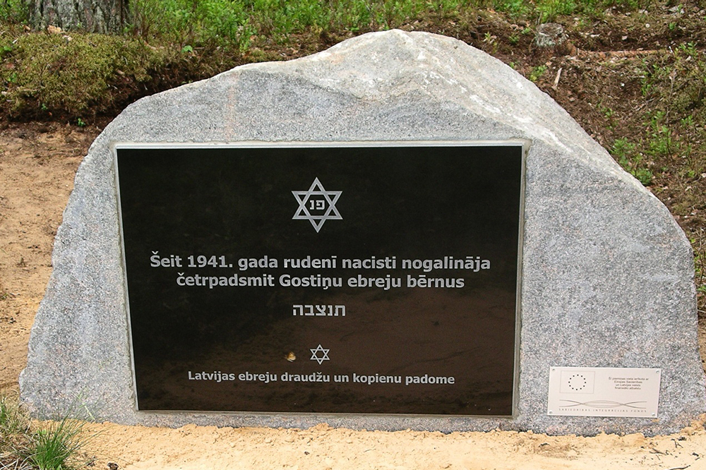 Осенью 1941 года на краю еврейского кладбища Гостини были убиты евреи-подростки, которых сначала оставили в живых, вывозя летом из гетто работать на фермах. Их останки были обнаружены только в 2005 году, и на этом месте Совет еврейских общин Латвии установил памятный камень с чёрной гранитной плитой и надписью на латышском: «Здесь осенью 1941 года нацисты убили четырнадцать еврейских детей Гостини».