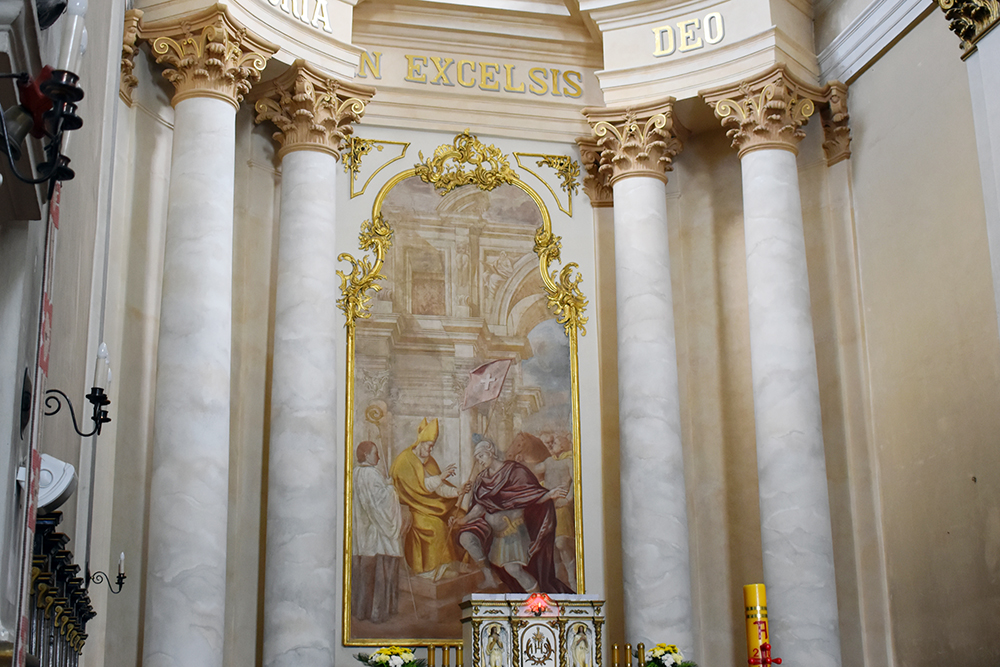 Фреска центрального алтаря, выполненная Кастальди, называется "Святой Людвиг отправляется в Крестовый поход". Она долгое время была закрыта картиной с тем же сюжетом, написанной, по одной версией, известным польским художником Яном Матейко, по другой – его учеником по эскизу мастера. Сейчас центральная фреска расчищена и открыта, а картина стоит справа от алтаря.