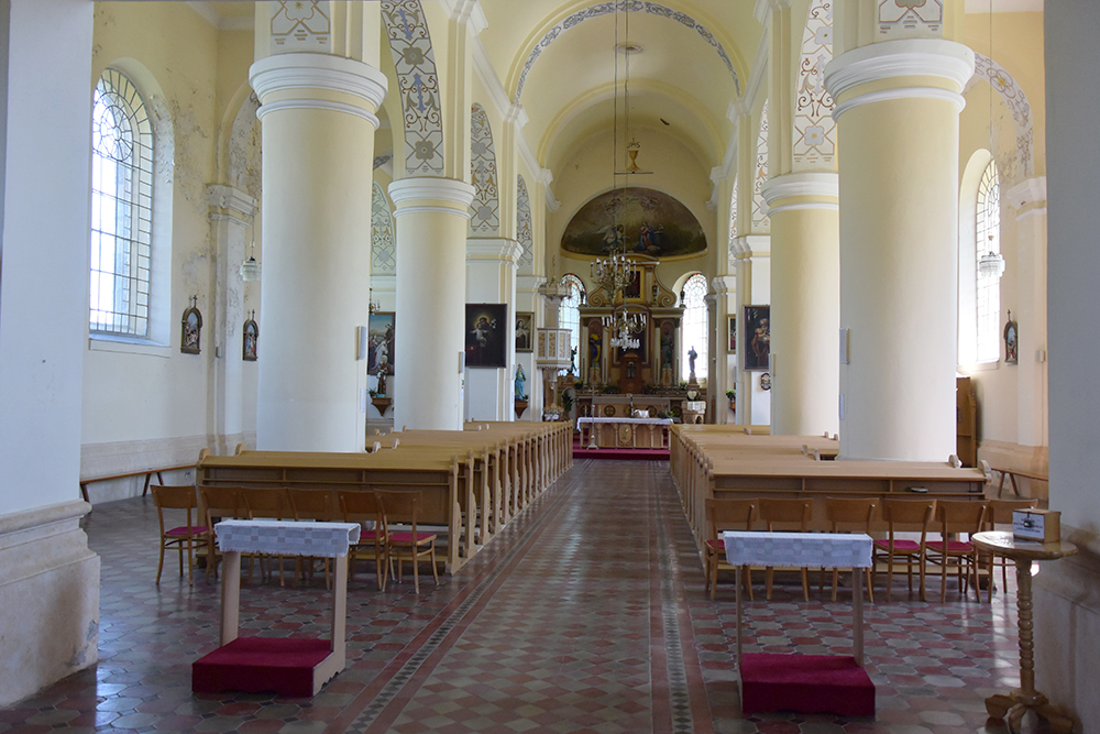 В интерьере храма сохранились произведения искусства из прежних деревянных церквей, стоявших в Балтинаве: изображение Девы Марии, писанное на коже и натянутое на деревянный подрамник, часть алтаря, созданного в 1882 году, скульптура XVII века.