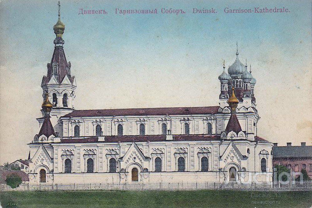 В 1903 году руководство Полоцкой епархии (в церковной юрисдикции которой в ту пору находилась территория Латгалии) решило построить в Двинске новую гарнизонную церковь. Храм во имя Святых Бориса и Глеба был освящён летом 1905 года. Строительство финансировалось военным министерством. Военную приписку церковь утратила уже в независимой Латвии, - в 1922 году в храме был организован постоянный приход. Настоятелем собора был назначен протоиерей Августин Петерсон, бывший военным священником, а впоследствии ставший митрополитом Рижским и всея Латвии.