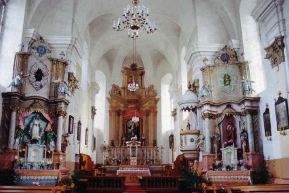 Первый деревянный храм был построен в селе по приказу Великого гетмана Княжества Литовского Льва Сапеги. После того как храм сгорел, в 1759 году был заложен нынешний барочный Костёл Успения Девы Марии. Закончили строительство каменного храма с двумя башнями в 1774 году. Сам костёл, каменный забор и ворота считаются памятниками архитектуры государственного значения.