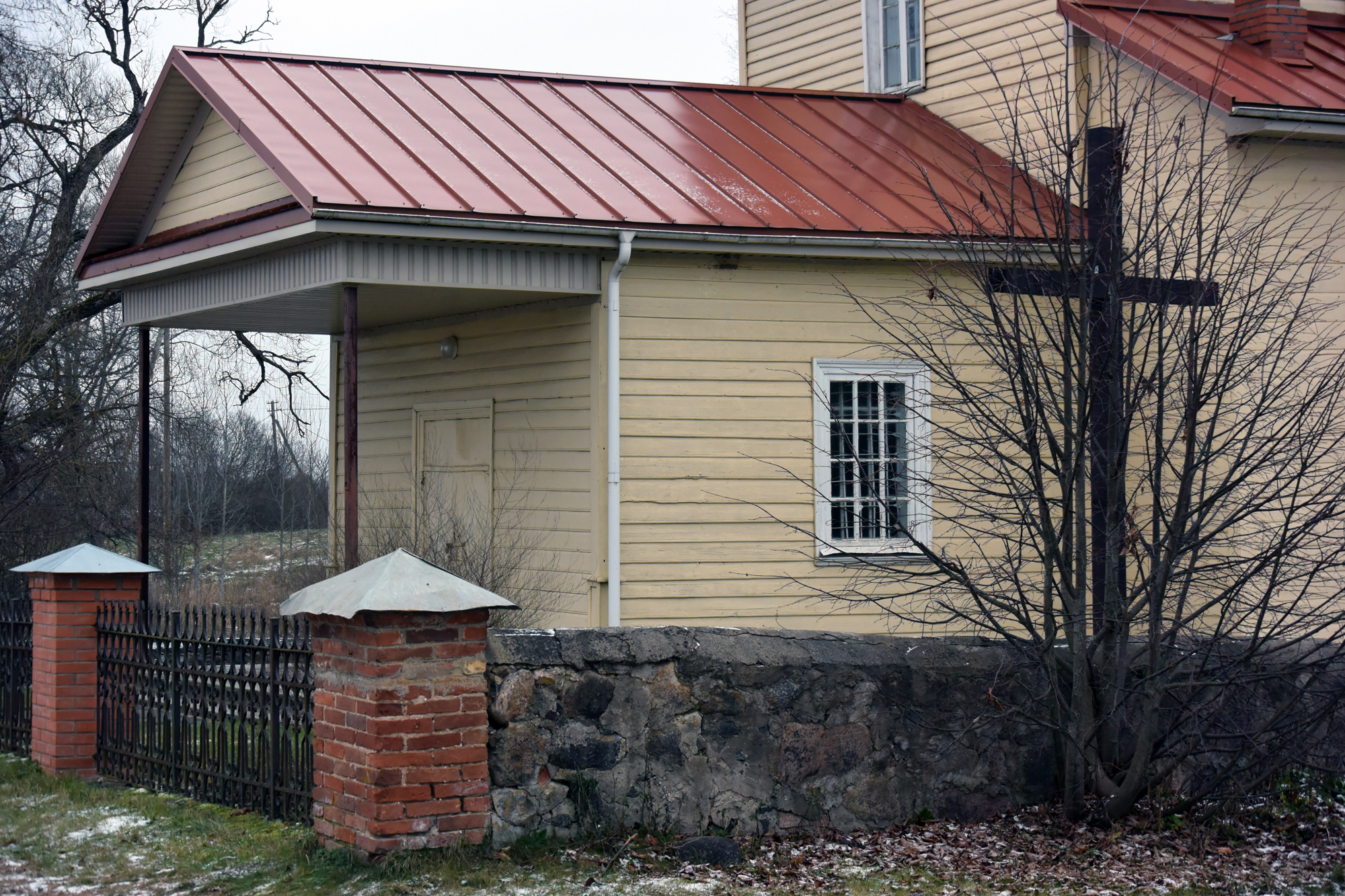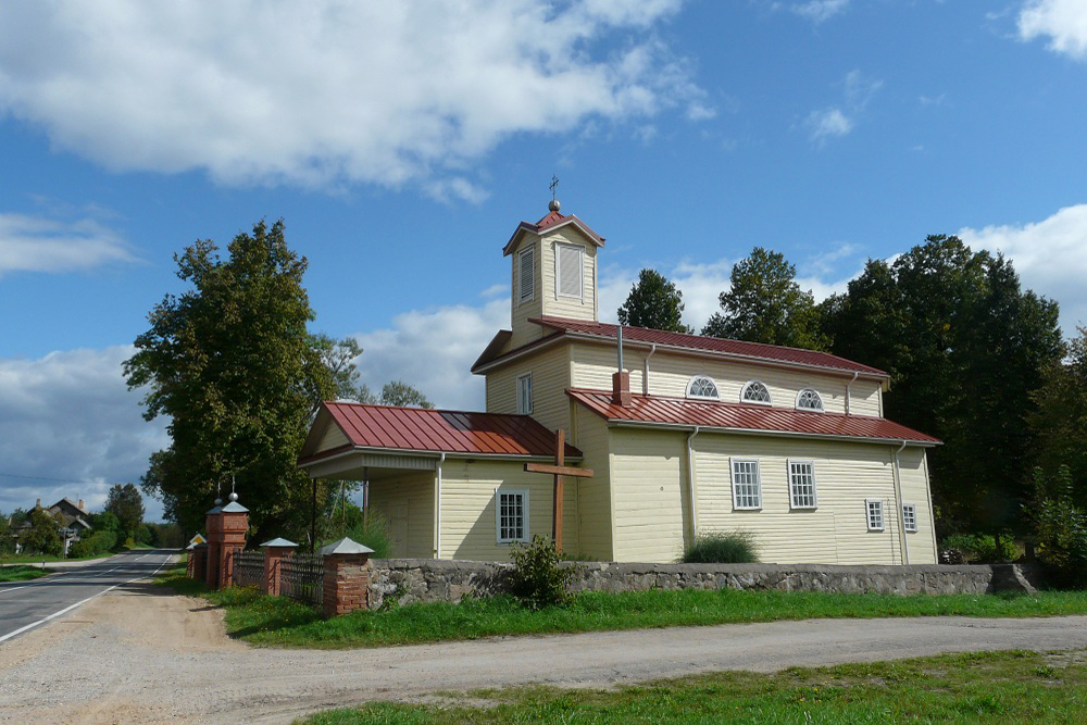 Здание церкви сложено из бруса и обшито крашеной доской. Внутренние помещения оштукатурены и побелены. В лаконичном интерьере выделяется красивая алтарная картина, изображающая Св. Троицу, работы неизвестного мастера.