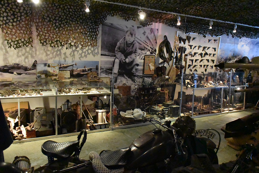 Основу экспозиции составляют все виды личного оружия периода Второй мировой. Собственно, это коллекция владельца музея Валдиса Тумовса, собранная за несколько десятилетий в рамках военно-исторического клуба. Как рассказывает сам Валдис, изначальной идеи делать из собрания музей не было, - ангар был закрытым местом собрания клуба. Но однажды, с открытия доступа к коллекции для местных жителей, началась история постоянной экспозиции.