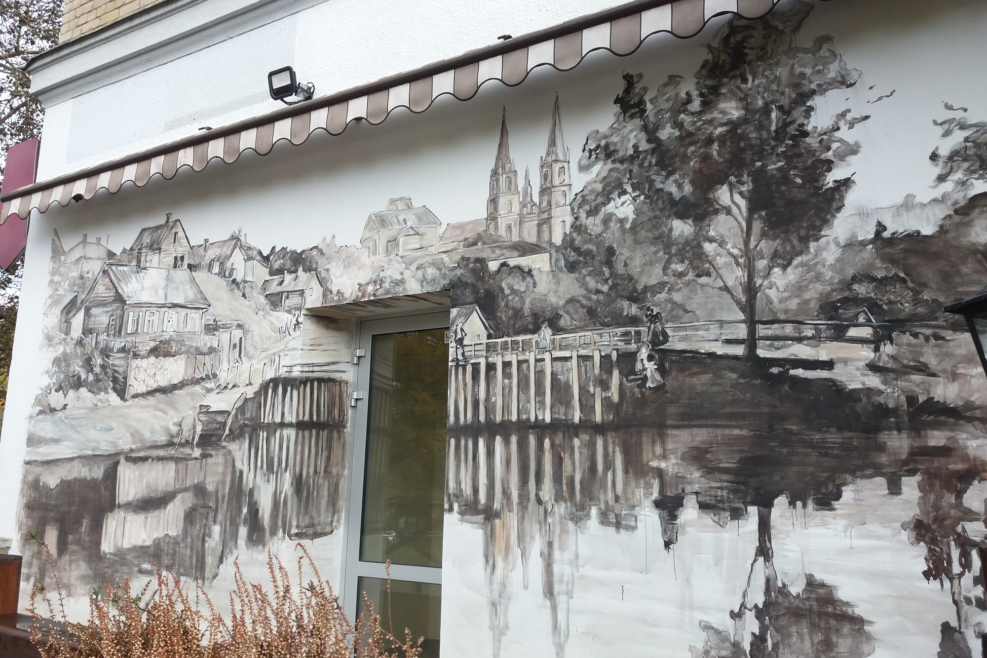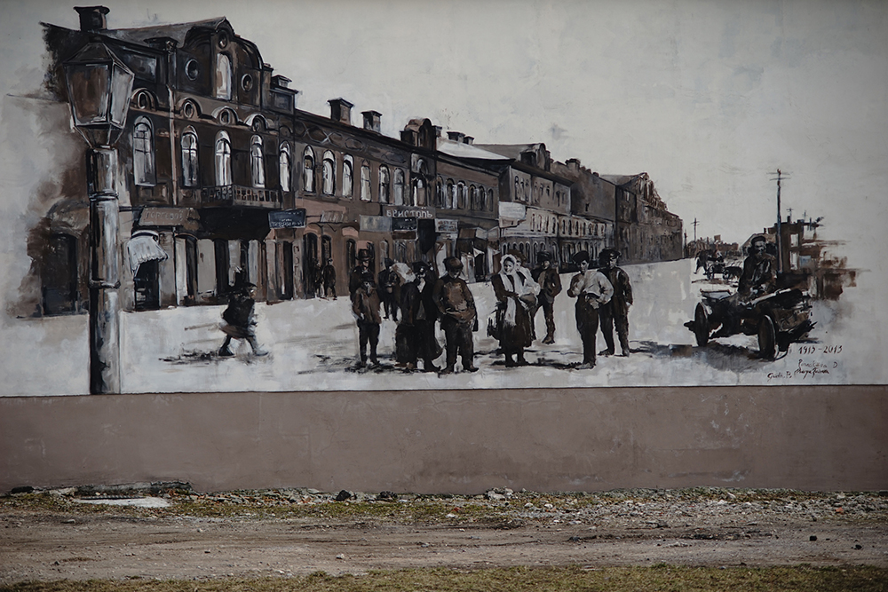 Еще одна картина на другой стене баптистской молельни была написана в 2015-м. На ней изображено Двинское шоссе в 1916 году. В том же году на здании RDK service (возле кафе Marijas, Atbrīvošanas aleja 86) художницы изобразили старый фруктовый киоск. Он когда-то стоял напротив нынешнего здания сервиса и теперь получил в художественном исполнении зеркальное отражение.