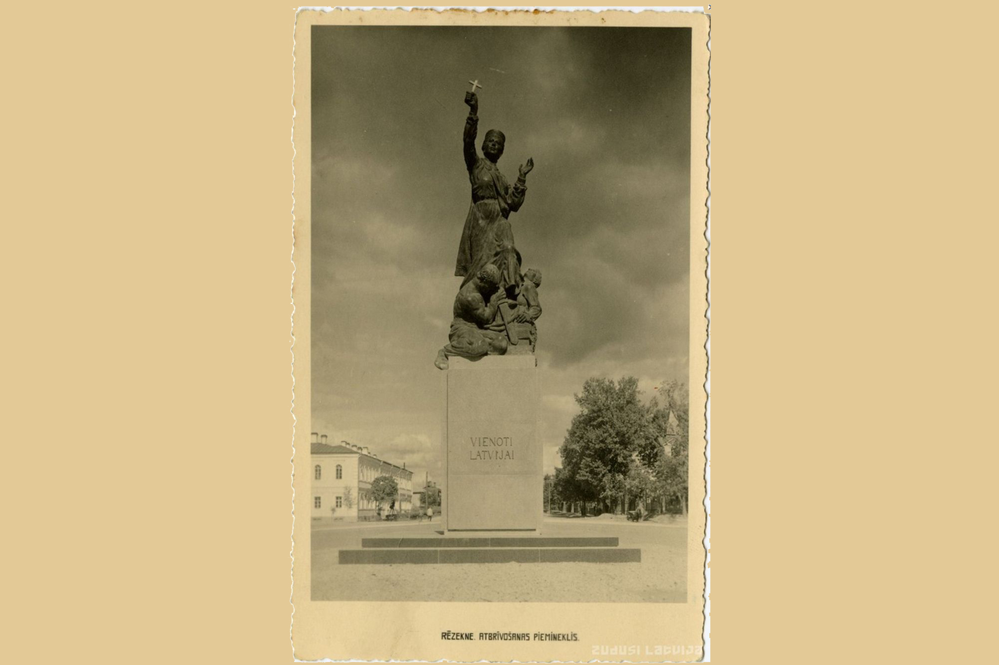 8 сентября 1939 года в Резекне был открыт памятник "Едины для Латвии". Это было в День Рождества Девы Марии и поэтому фигура женщины с крестом прочно стала ассоциироваться с Богоматерью.