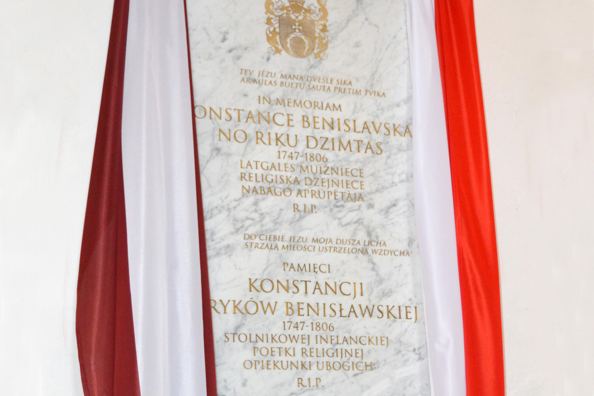 На памятной доске в ее честь на польском и латышском языках написано: "О Тебе, Иисус, душа моя малая изнывала со стрелой любви. В память о Констанции Бениславской, урожденной Рык, 1747-1806. Латгальская помещица, религиозная поэтесса, попечительница бедных. RIP".