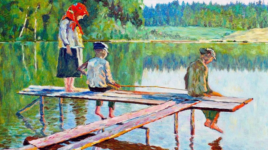 Николай Богданов-Бельский, "Вечер. Удильщик", 1925