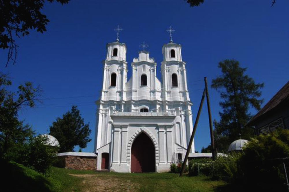 Первый деревянный храм был построен в селе по приказу Великого гетмана Княжества Литовского Льва Сапеги. После того как храм сгорел, в 1759 году был заложен нынешний барочный Костёл Успения Девы Марии. Закончили строительство каменного храма с двумя башнями в 1774 году. Сам костёл, каменный забор и ворота считаются памятниками архитектуры государственного значения.