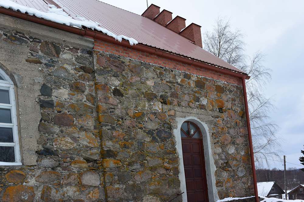 Архитектура этой одной из самых поздних "валунных" церквей получилась не совсем типичной для Латгалии. Местные жители Павлов и Скрибанс (последний учился на архитектора, но диплома тогда еще не имел) были авторами оригинального проекта храма, заложенного в 1933 году. Частая смена священников местного прихода и финансовые затруднения отразились на сроках строительства. Храм обрел форму лишь к 1939 году, а освящен в честь Непорочного зачатия Девы Марии был в 1940-м, последнем году независимости Латвии.