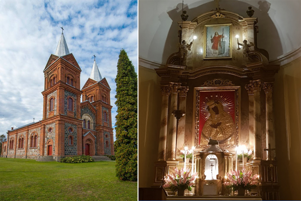 В центральном алтаре храма помещены изображение Остробрамской Богоматери, алтарная картина "Молитва Иисуса в Гефсиманском саду" и изображение Св. Лаврентия. Среди местных реликвий вам назовут и церковную книгу, с записью о крещении Болеслава Слосканса (Boļeslavs Sloskāns) – видного деятеля католической церкви, который может стать первым святым латышской национальности (процесс беатификации епископа Слосканса идёт с 2004 года).