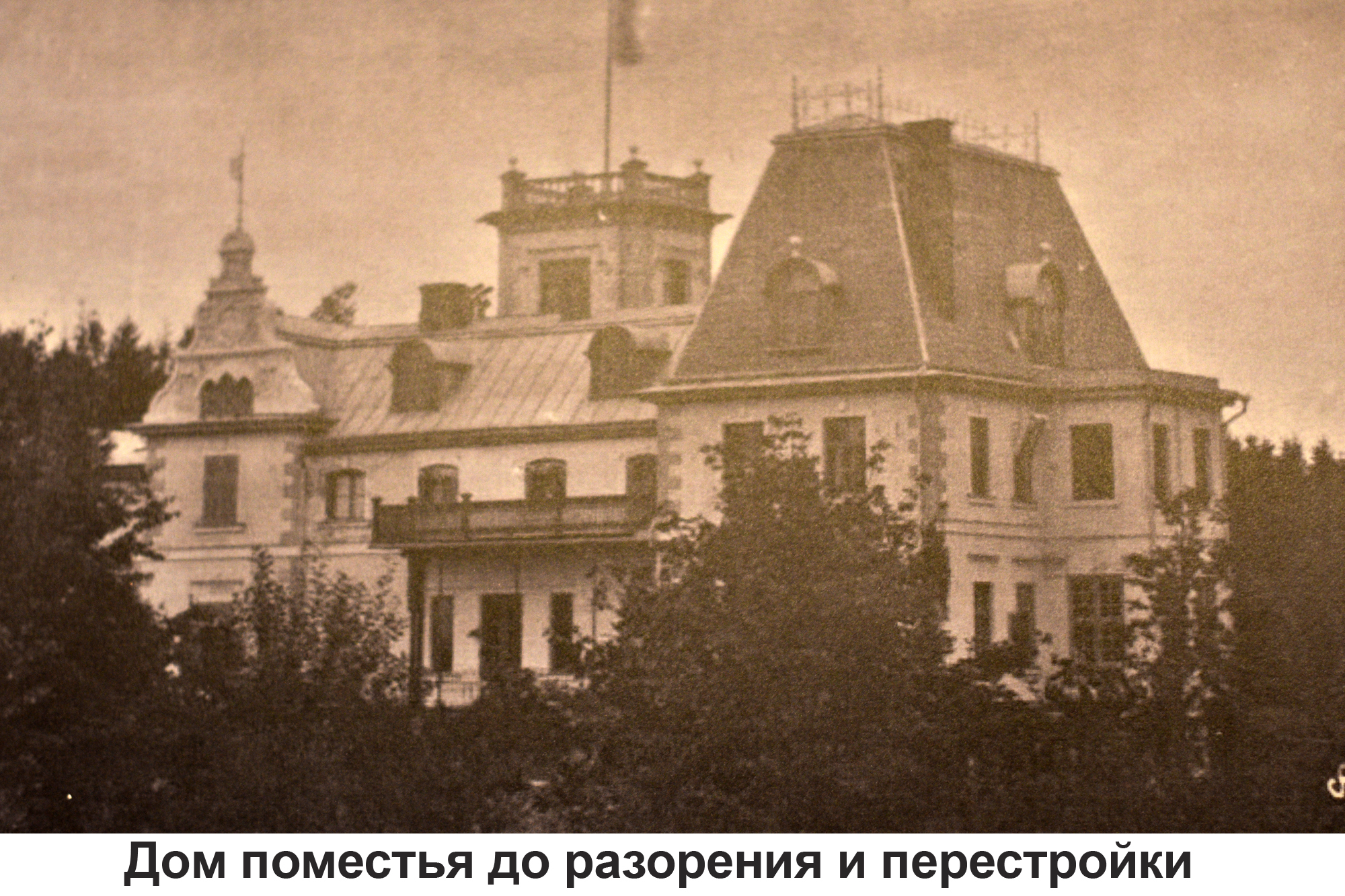 Первоначальное здание в духе французского неоклассицизма с любимыми местными помещиками ложноготическими элементами было построено в 1830-1840-х годах владельцем поместья Штомерзее бароном Иоганном Готлибом (Эдуардом Генриховичем) фон Вольфом (1817—1883), отцом русского государственного деятеля Бориса фон Вольфа Вокруг дворца был устроен английский ландшафтный парк площадью 25 гектар. Внушительная подъездная аллея из старых деревьев сохранилась до сих пор.